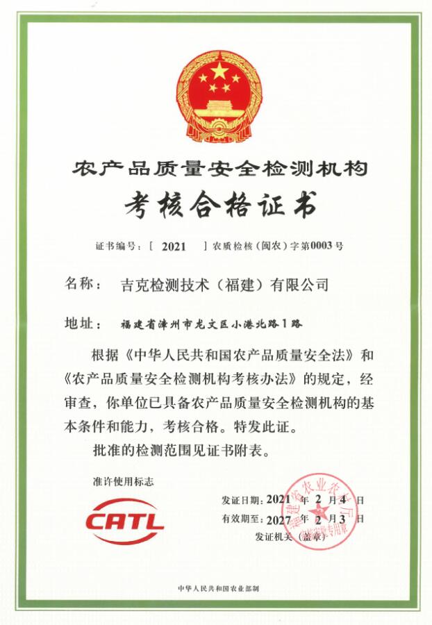 吉克檢測技術(福建)有限公司,位于福建省漳州市龍文區(qū)小港北路1號,于2019年8月注冊成立,是一家獨立的第三方檢測公司。公司已經(jīng)通過檢驗檢測機構計量認證(CMA)、農(nóng)產(chǎn)品質量安全檢測機構資質認證(CATL),獲得中國合格評定國家認可委員會(CNAS)認可。公司本著“嚴謹、規(guī)范、高效、協(xié)作”的原則和對客戶及社會高度負責的精神,充分利用本公司優(yōu)質的檢測環(huán)境、先進的檢測設備和專業(yè)的技術人員,第一時間為客戶提供科學、公正、準確的檢驗檢測報告。 公司實驗室面積1100多平方米,儀器設備兩百多臺(套),固定資產(chǎn)一千多萬元,在職員工31人,技術人員中的中高級職稱及同等能力人數(shù)占60%以上。我們的服...
